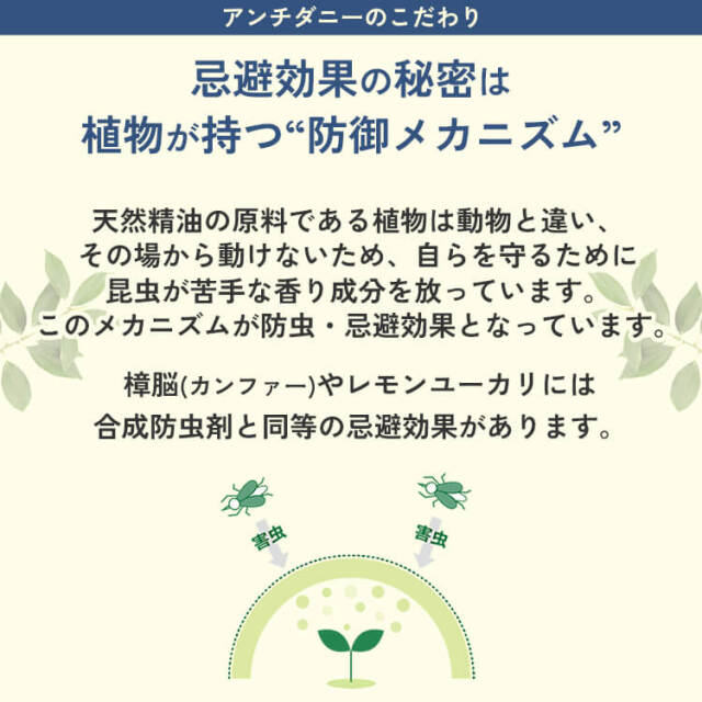 - ※ダニの忌避を目的としているため、ダニの増殖を抑制したり、駆除するものではありません