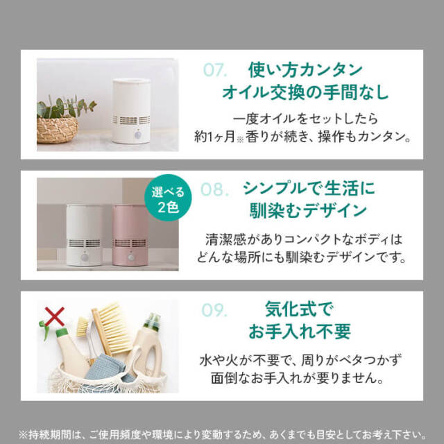 オイル交換の手間なし一度オイルをセットしたら約1ヶ月 香りが続き、操作もカンタン。